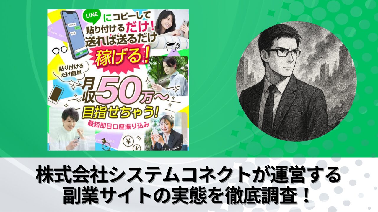 今回は株式会社システムコネクト|阿部哲也が運営する副業サイトについて検証します。